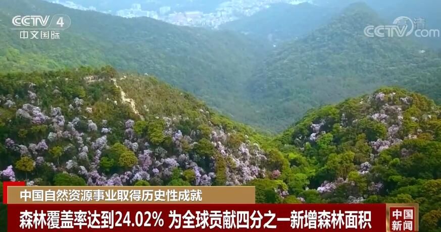 十年来,中国持续开展大规模国土绿化。累计完成造林9.6亿亩,新增和修复湿地1200多万亩,森林覆盖率达到24.02%,草原综合植被盖度达到50.32%。近十年,中国为全球贡献了四分之一的新增森林面积。